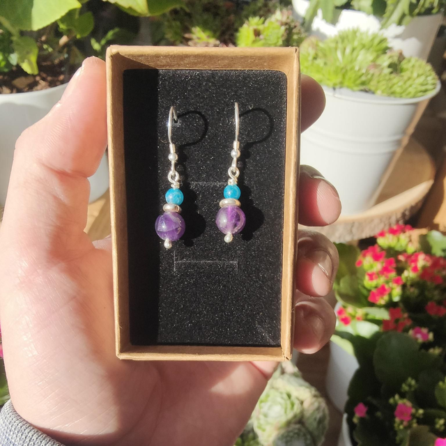 Boucles d'oreilles "Harmonie" Double : Apatite et Améthyste