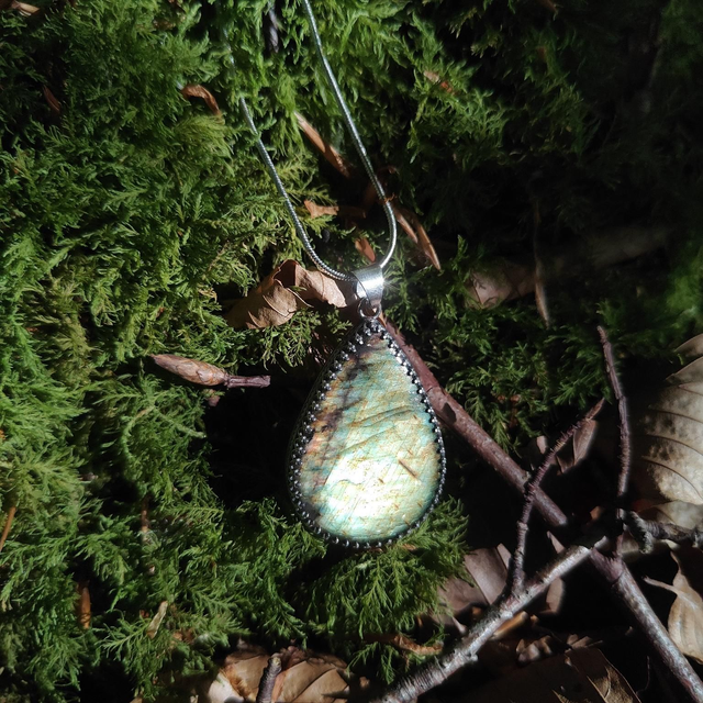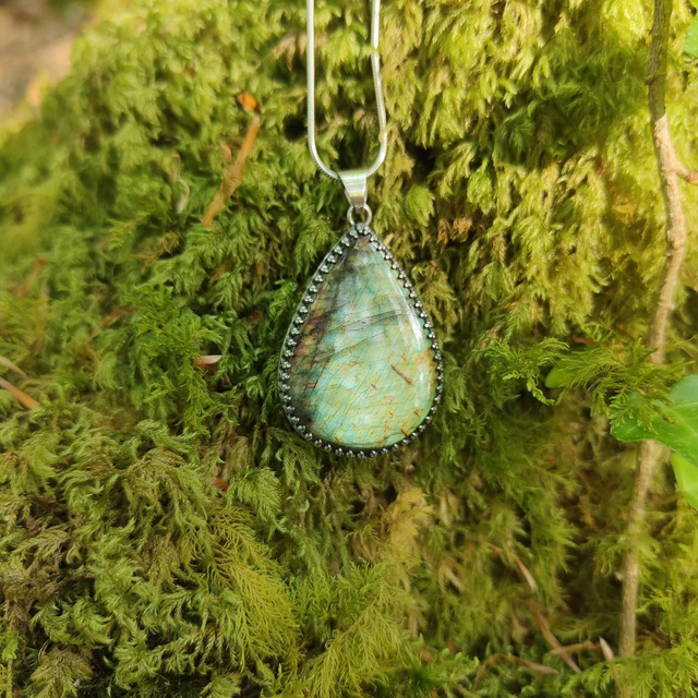 Pendentif Âme de la Forêt en Argent et Labradorite Verte